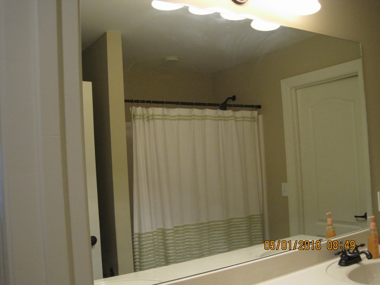 Just like I promised here is the tutorial on how to make a custom looking frame around your bigger then life mirror your builder put up in the bathroom.