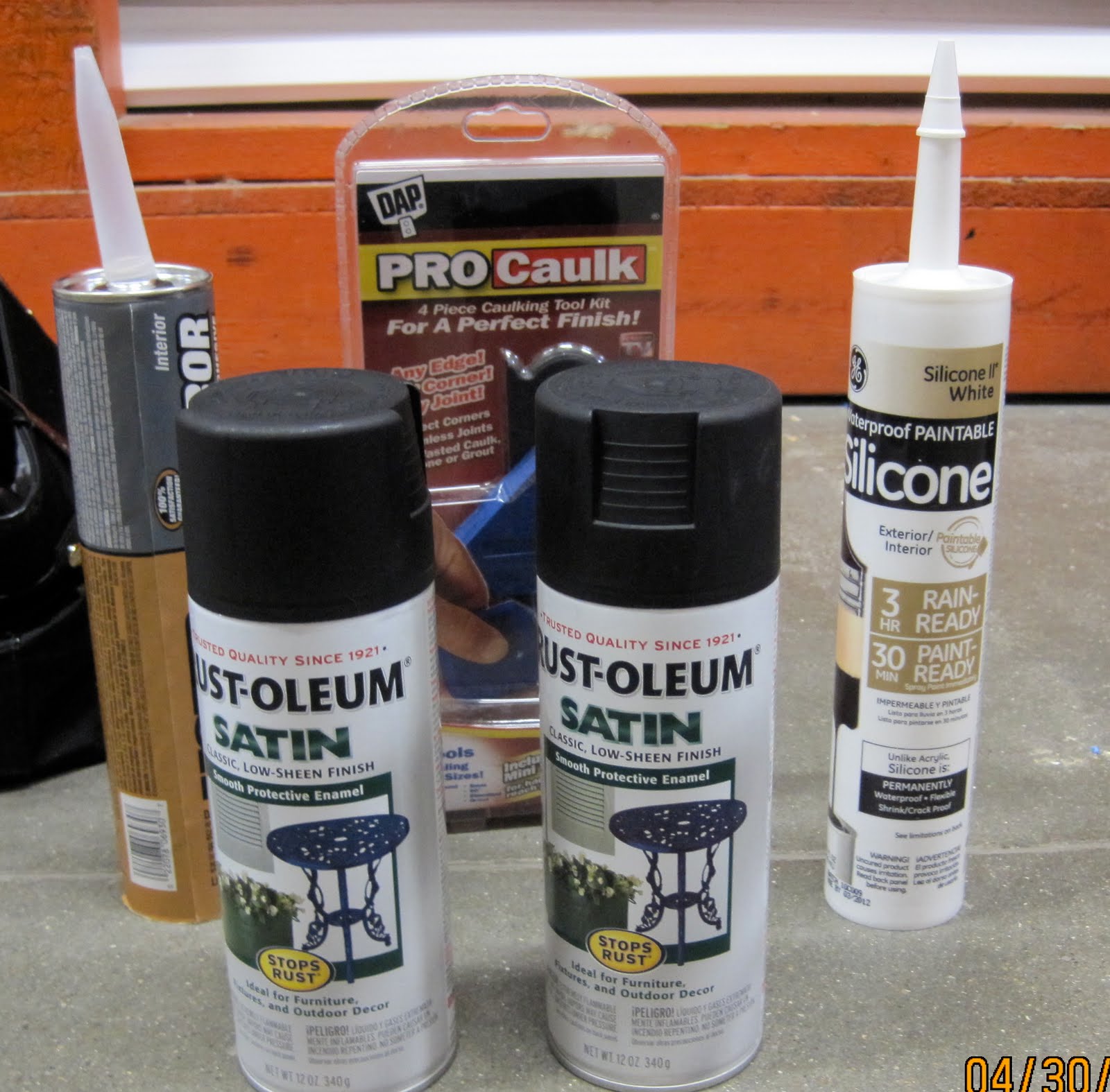 We also got some Caulk, spray paint, liquid nails and pro caulk helpers (I don’t know what you are suppose to call them but they help you put the caulk on smoothly).