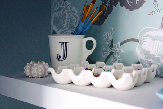 And a ceramic egg crate for additional small crafting embellishments and office supplies:
