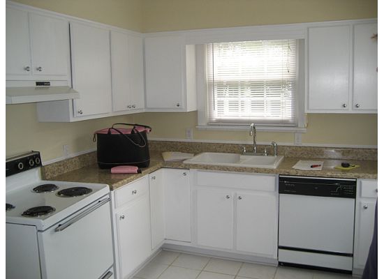 When we moved in our kitchen was blah, for lack of a better word. Our appliances were old, the cabinets were dingy, and the floor was horrendous.
