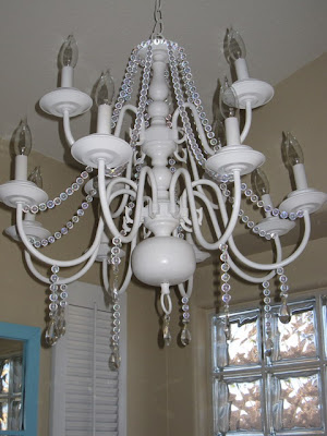 >I have that same chandelier !!! I was thinking of getting it OUT!! But now that I see you can paint it white…..hmm I cannot wait to get started on mine, I love the beads too!! looks like crystals to me!