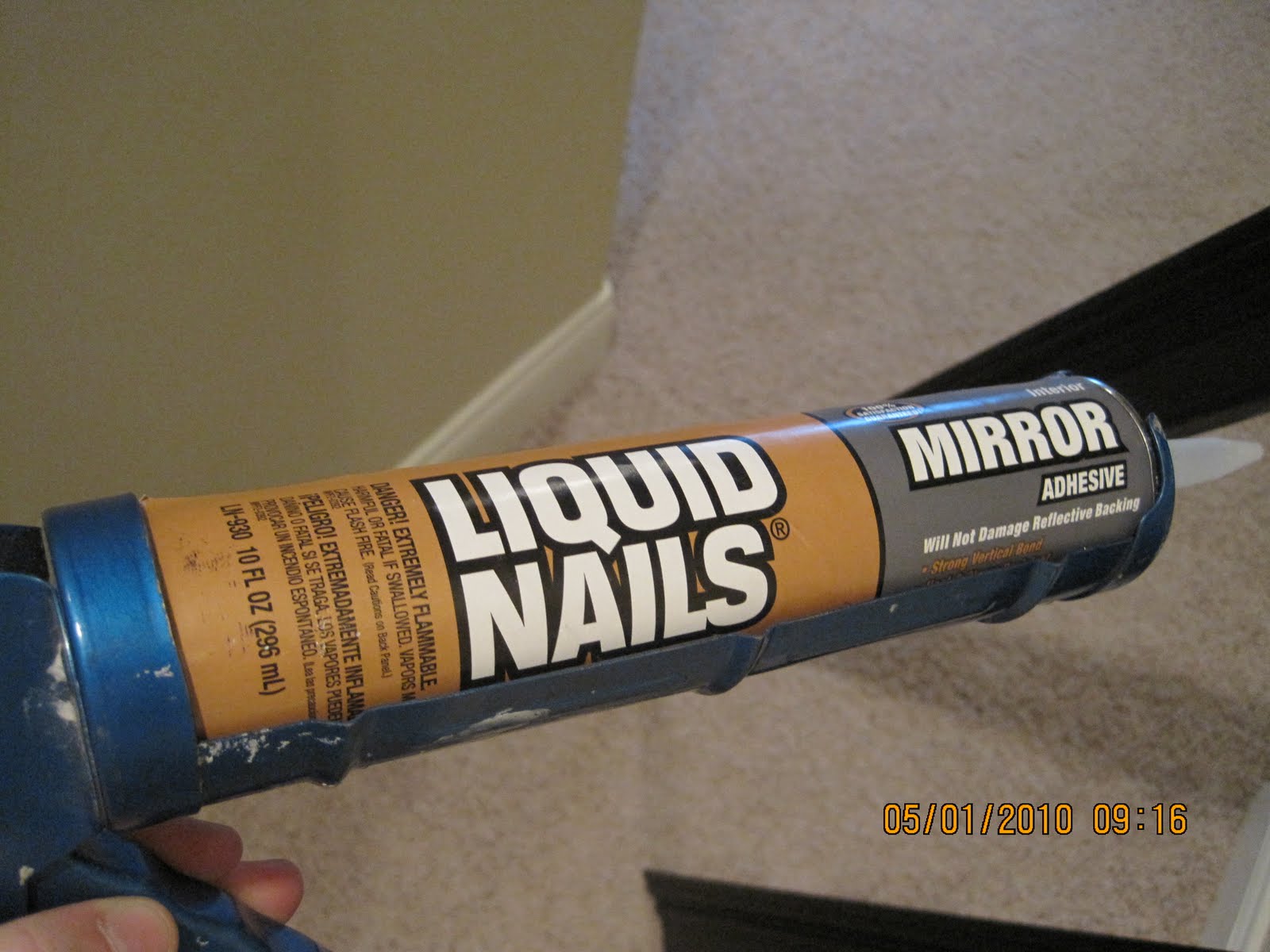 To glue it onto the mirror we used Liquid Nails that is for mirrors.