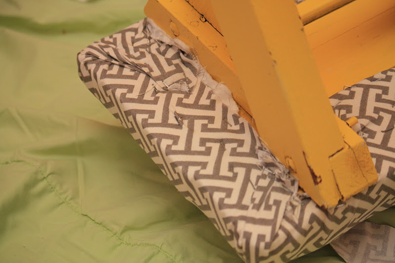 View of the bench, PRE NAILHEAD TRIM…I love the gray and yellow!!!!