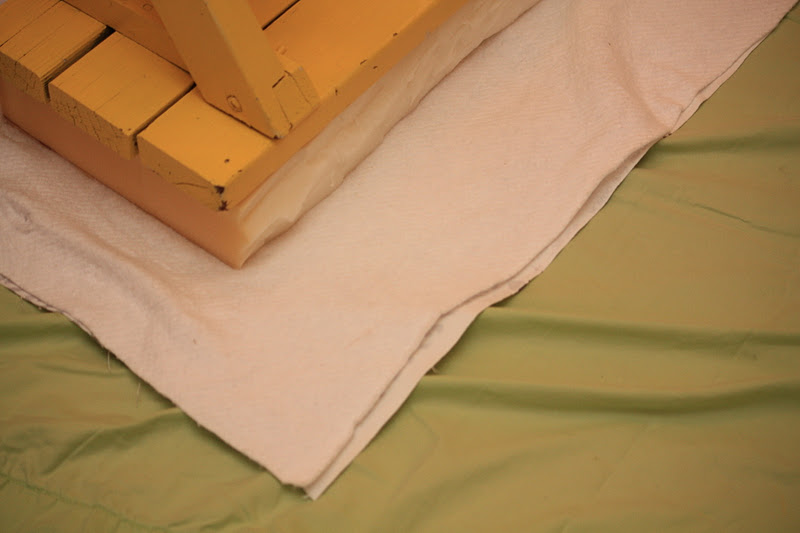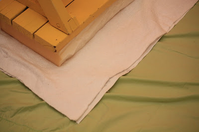 when I got to the end, I wanted to cover up the area where I had lots of stapling…I took a piece of the batting and glued it on top.