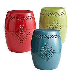Anyway, since building the deck, we have been on the look out for outdoor furniture. So, I decided to try a good old mood board for our dream space. I decided to shop Pier 1, I loved it! Half of the outdoor furnishings I want to use on the inside of my house. For example my absolute favorite way to add a pop of color is this Garden stool. I need one for my living room too!