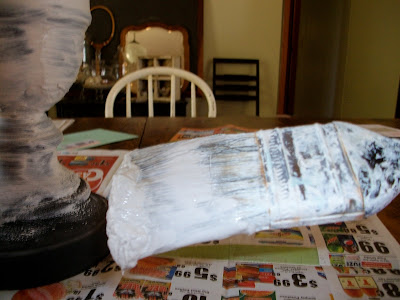 I mixed up a thin batch, and used an old brush to spread the plaster all over the lamp.