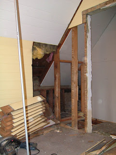 We forgot to take actual pictures of the closet. But when we started demolishing the hall we got some of the interior of the old closet. they are mighty scary! Don’t cha think?